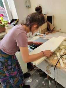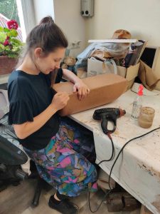 W ramach praktyk studentki zajmowały się przygotowywaniem elementów scenografii do spektaklu “Królowa śniegu”. Uczestniczki mobilności tworzyły formy, wycinały, malowały, oklejały, ozdabiały elementy scenografii. Miały okazję m.in. pracować z materiałem o nazwie worbla czy nauczyć się obsługi maszyn do cięcia styroduru i sztucznych luster.